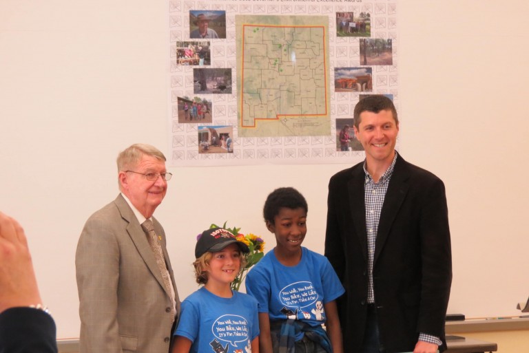 On Earth Day, 2016, two members of the GWE Acequia Madre group, on behalf of all the GWEers, went to Albuquerque to accept an Award from the Governor for Environmental Excellence in Youth Projects (K-12)! Here are some photos of the event. Mags and Aiden accepted the award.