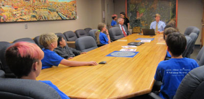 The GWEers and their GWE mentor, Ms Sabrina, took the elevator to the 11th floor and went to Mayor Keller’s office, where they met with Alan Armijo, one of the mayor’s assistants. He showed them into the mayor’s conference room.
